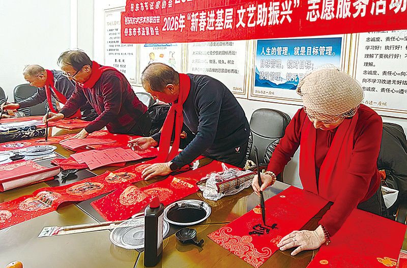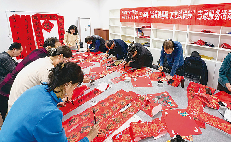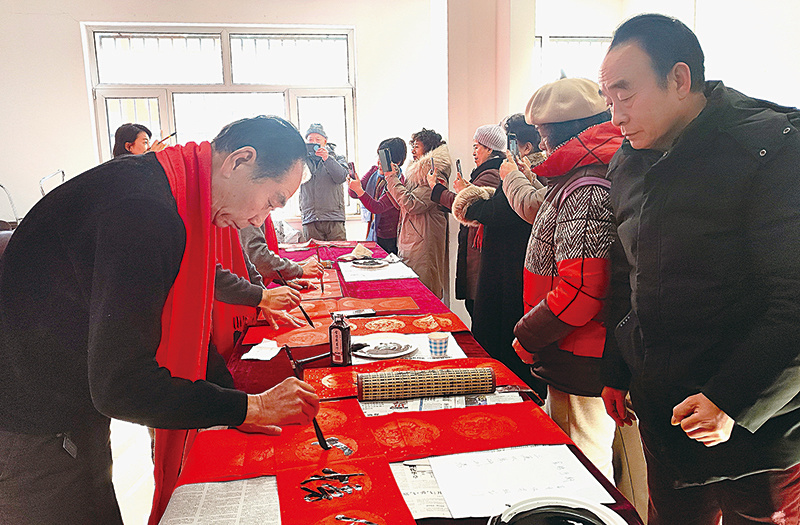 连日来,市文联、市书法家协会积极开展“新春进基层,文艺助振兴”志愿服务活动,16支文艺小分队深入24类基层场景,开展活动80多场,书写两万余副春联与“福”字,让传统笔墨走进百姓家,为新春注入文化暖意。在各活动现场,书法家们俯身专注书写“福”字、春联,笔锋苍劲有力;市民们则驻足等候、拍照记录。从笔墨创作到亲手递送,文艺志愿者们以字为媒,让手写祝福传递真挚年味。