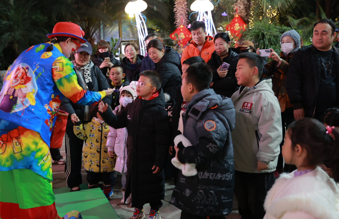 正月初二至正月初六,非遗盛宴与潮流演艺轮番登场,非遗火棍、舞狮、舞蹈气模串烧等节目将接连上演,幸运互动带动全场热情,