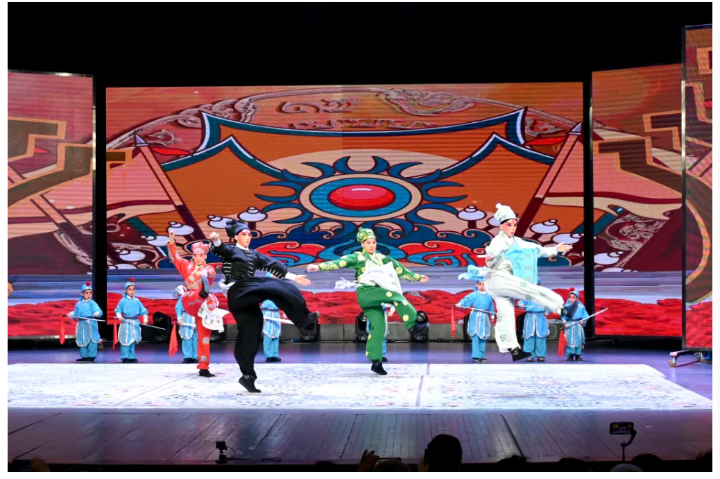 率先登场的《传统京剧联唱》中,《卖水》的俏皮、《对花枪》的沉稳、《铡美案》的苍劲、《三家店》的豪迈、《穆桂英挂帅》的英气,依次呈现。演出接近尾声,京歌《走向复兴》压轴登场。台上的演员们身着戏装,唱腔激昂;台下观众起立鼓掌,久久不息。