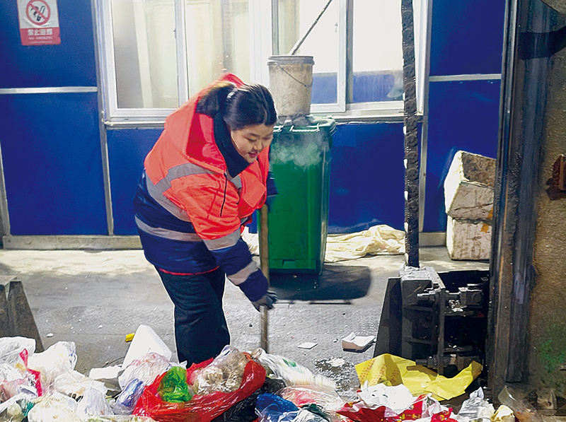 2月17日,大年初一。午夜的钟声敲响不久,市城市环境中心环卫部元宝站东平垃圾收集楼的保洁员李佳楠就赶到单位。