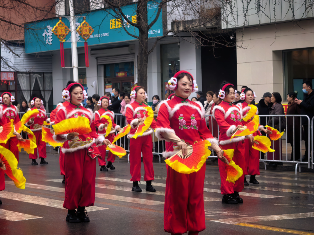 当日上午9点,伴随着铿锵有力的锣鼓节奏,14支秧歌队伍依次亮相。队员们身着鲜艳服饰、精神饱满、神采飞扬,传统秧歌、高跷、民俗扮相等特色节目轮番上演。参演群众上至花甲老人,下至青年爱好者,人人面带笑容、步伐轻快,用最真挚的表演传递新春祝福,表达对新一年美好生活的热爱与期盼。