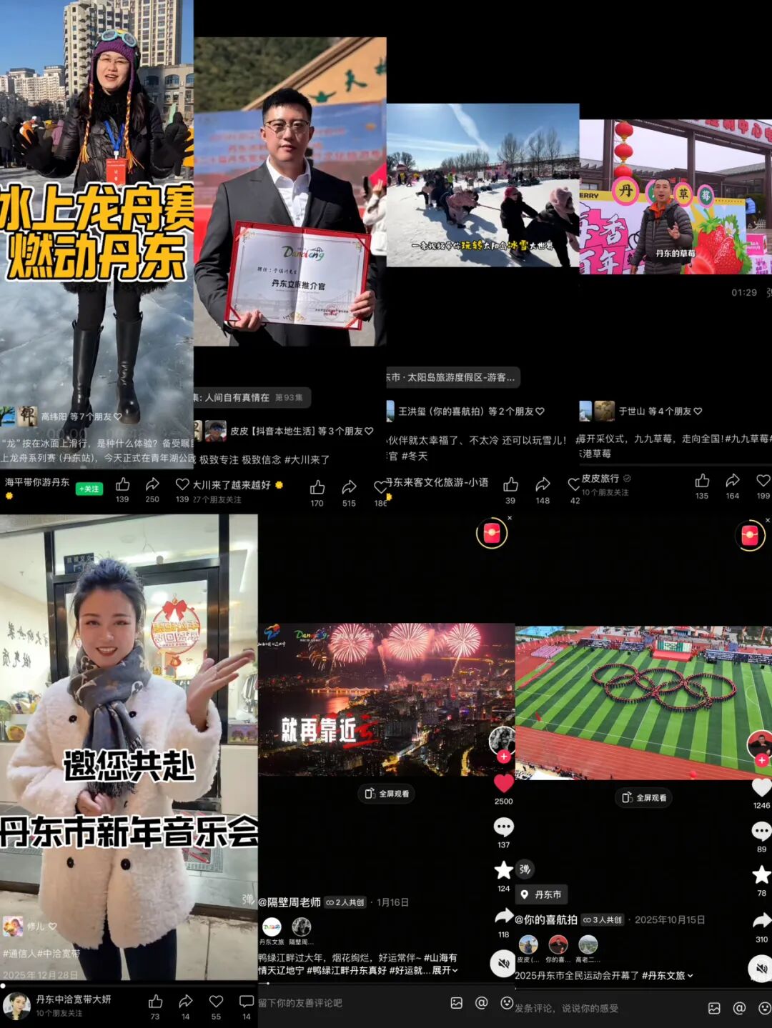 18位“丹东文旅推介官”用超过200万的粉丝覆盖量,汇聚成一股不可忽视的传播力量。“依柏溢(一百亿)”站上木森大舞台,把丹东人的热情唱给更多人听;“小语在丹东”“海平带你游丹东”穿梭于冰雪之间,将冬日里的美好,精准推送至游客指尖……他们用自己的方式,让丹东的好,被更多人看见、听见、记住。