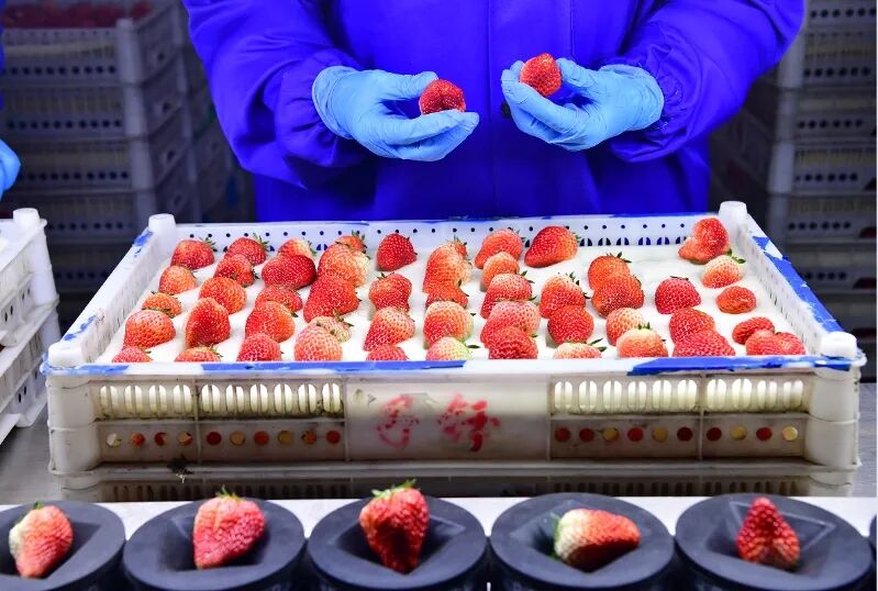 近日,记者来到东港市十字街镇的丹东市圣野浆果专业合作社,这里是一派忙碌的景象,智能分选设备运转的轻微嗡鸣,将一颗颗红艳艳的草莓通过“智能分选流水线”,完成从田间到盒装的品质蜕变。