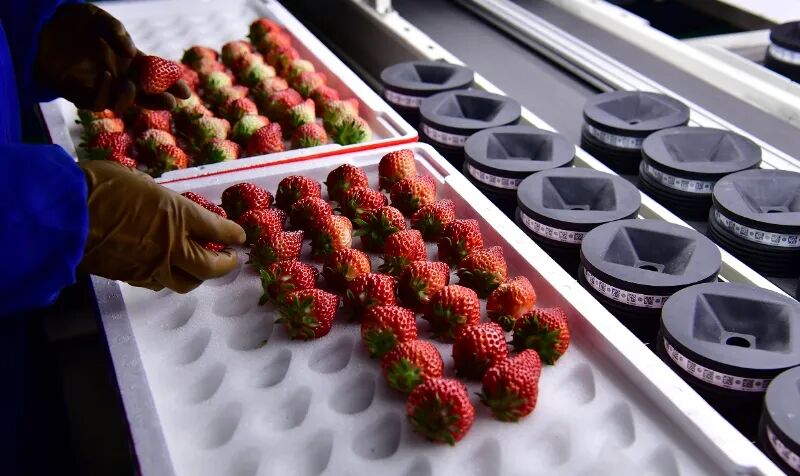 智能分选设备的稳定运行让装在同一个盒子里的草莓实现了“同胞兄弟”般大小一致、口感趋同,确保了出厂草莓的高品质和稳定性,满足了大型商超、电商平台以及高端消费者对产品品质标准化稳定化的强烈需求。合作社的草莓现已成功出口至阿联酋迪拜、新加坡等国际市场。科技赋能夯实了“东港草莓”金字招牌,点亮了这颗百年产业的“莓”好未来。