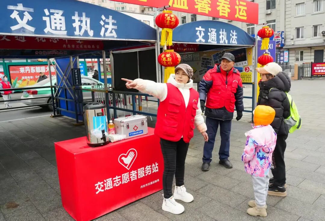 春运高峰期,铁路丹东站客流如织。出站口秩序井然,行李箱滚轮声、车站广播声、温馨提示声交织在一起,勾勒出一幅生动的节日出行图景。人群中,身着红马甲的郑树山志愿服务队队员格外醒目,他们用一次次暖心服务,温暖了旅客的出行路,擦亮了城市文明底色。