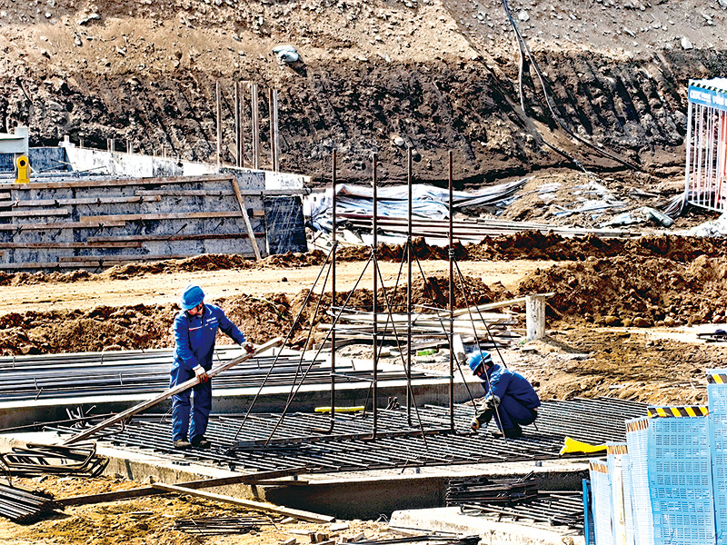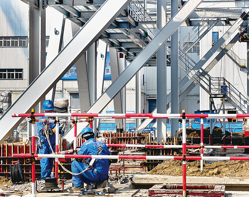 目前,项目主厂房土建、钢板库E标段换填及烟囱施工正有序开展。