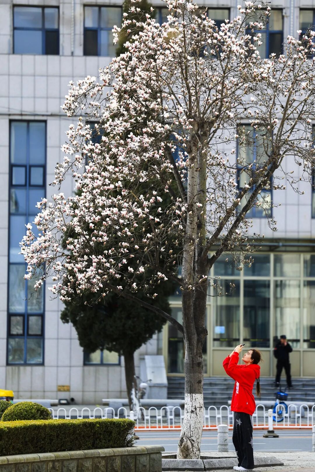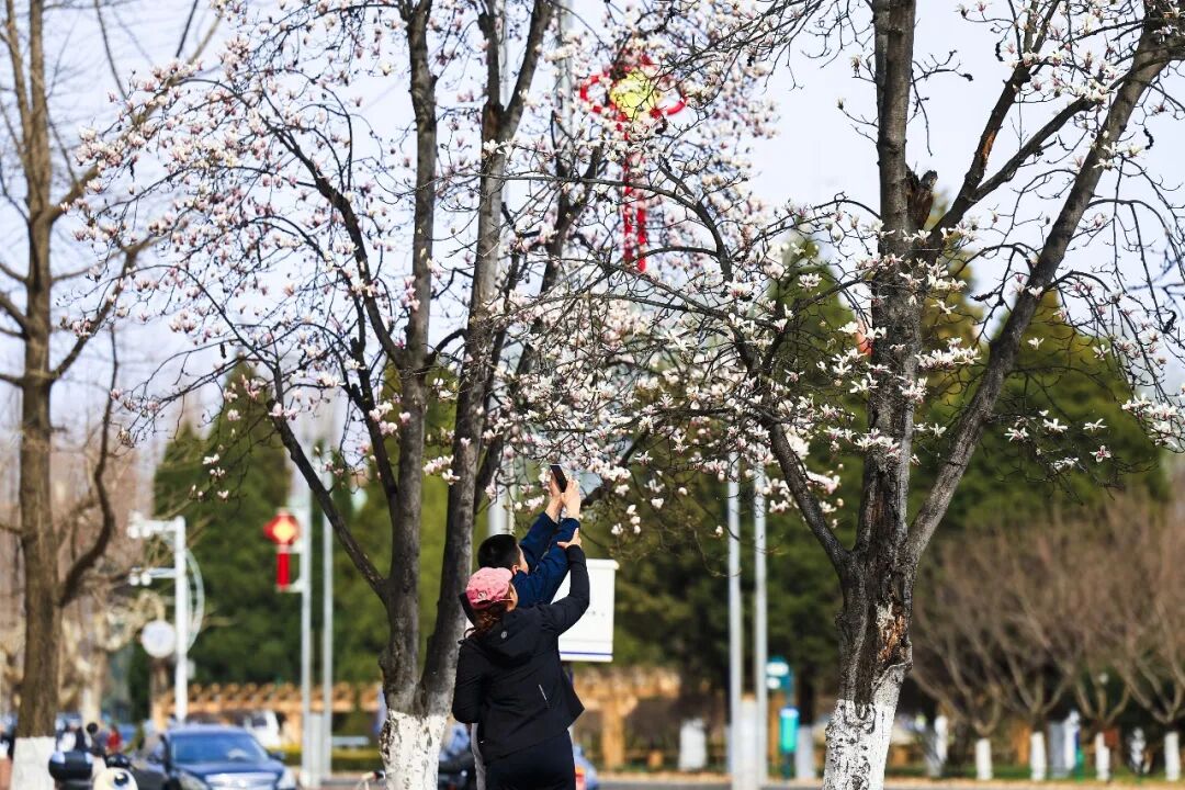 无论是摄影爱好者捕捉花之倩影,还是身着轻便春装的年轻人与玉兰同框打卡,亦或是老人带着孩童在花下漫步,每个人的脸上都洋溢着惬意与欢喜,大家小心翼翼地呵护着这份早春的馈赠。