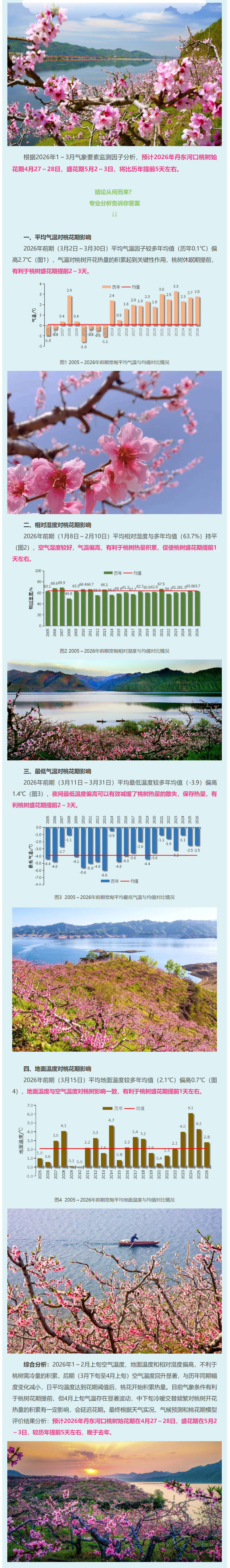 近期有网友询问今年河口桃花何时绽放,丹东气象部门对相关问题给出解答。让我们一起看看2026年适宜登临“桃花岛”的最佳时间吧!