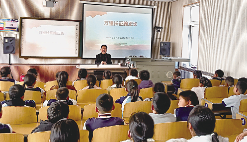 顾伟结合长征主题画卷,生动讲述了革命先辈不畏艰险、浴血奋战的英雄故事,引导学生们铭记革命历史,传承长征精神,争做新时代好少年。