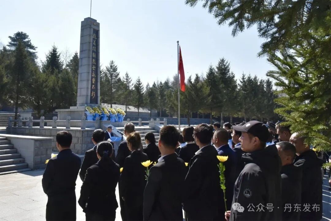 当日上午10时,振安区烈士陵园内松柏凝翠,青山静默,气氛庄严肃穆。全体人员整齐列队,神情凝重。伴随着雄壮的《中华人民共和国国歌》,祭扫仪式正式拉开帷幕,铿锵旋律在陵园上空久久回荡。
