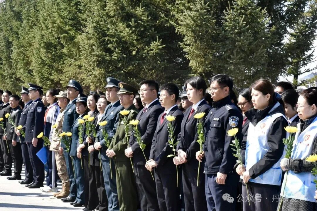 国歌唱毕,全场肃立默哀,向为保家卫国英勇献身的革命先烈致以最深切的悼念。在深情的《献花曲》中,各界代表缓步上前,向烈士纪念碑敬献鲜花。朵朵黄白菊寄托着对英烈的无限追思,大家以最庄重的礼仪,向英烈们致以最崇高的敬意。