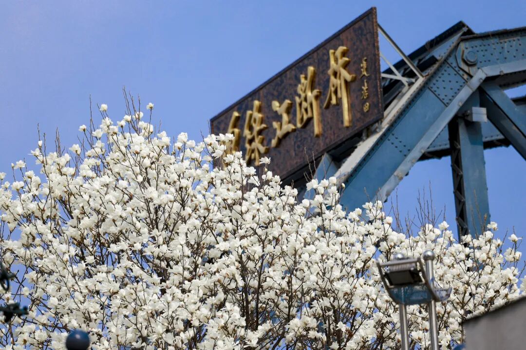 玉兰是丹东春日的标志景致,每年3月末至4月初如期绽放。断桥下的玉兰见证边城变迁,承载着人们对和平美好的向往;校园里的玉兰陪伴学子成长,寓意纯真与希望。四月的丹东,断桥映玉兰,书香伴花香,洁白花瓣不仅装扮了春日,更承载着城市的温情与力量,续写着动人的春日诗行。