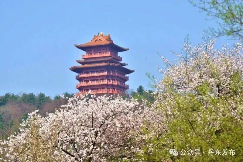 樱花主要分布在公园南坡林区。从正门进入,到公园前山主景区经荷花池到文化园,是一条经典的“樱花隧道”观赏路线。登临锦江亭远眺,可将如雪的花海、层叠的城市建筑与静谧的鸭绿江风光尽收眼底,构成丹东独一无二的春日画卷。