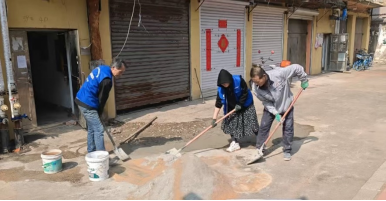 党员先锋冲在前,修缮道路解民忧。社区虹桥小区38、39号楼前,因管道施工导致地面破损坑洼,出行不便且隐患重重。社区依托党建品牌,将道路修缮列为民生重点项目,党员志愿者、楼长主动担当,齐心协力完成地面清理、回填、夯实等工作,彻底修复破损路面,让泥泞小路变成平坦坦途,切实解决居民出行难题,彰显党建引领为民服务的初心。