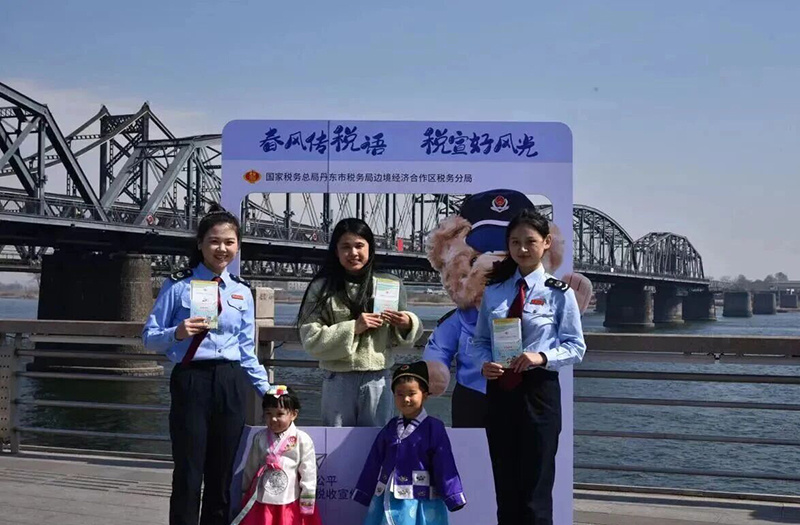 在第35个税收宣传月期间,国家税务总局丹东市税务局边境经济合作区税务分局在鸭绿江断桥旁设立税务主题打卡点与“税费服务站”,宣传税法知识,助力企业合规经营。
