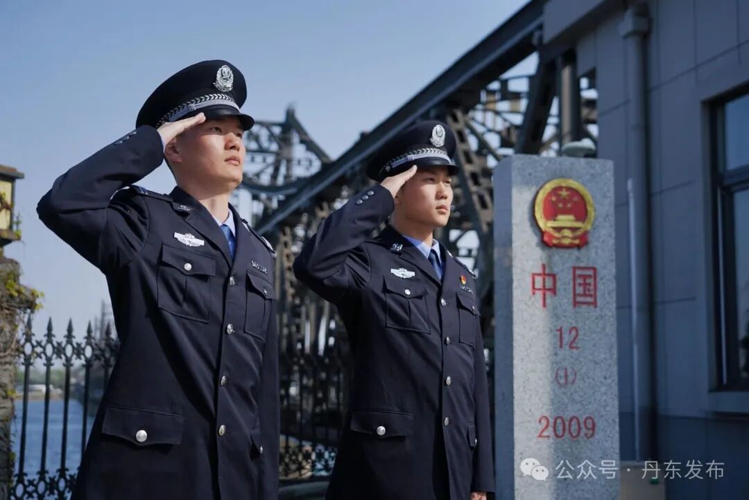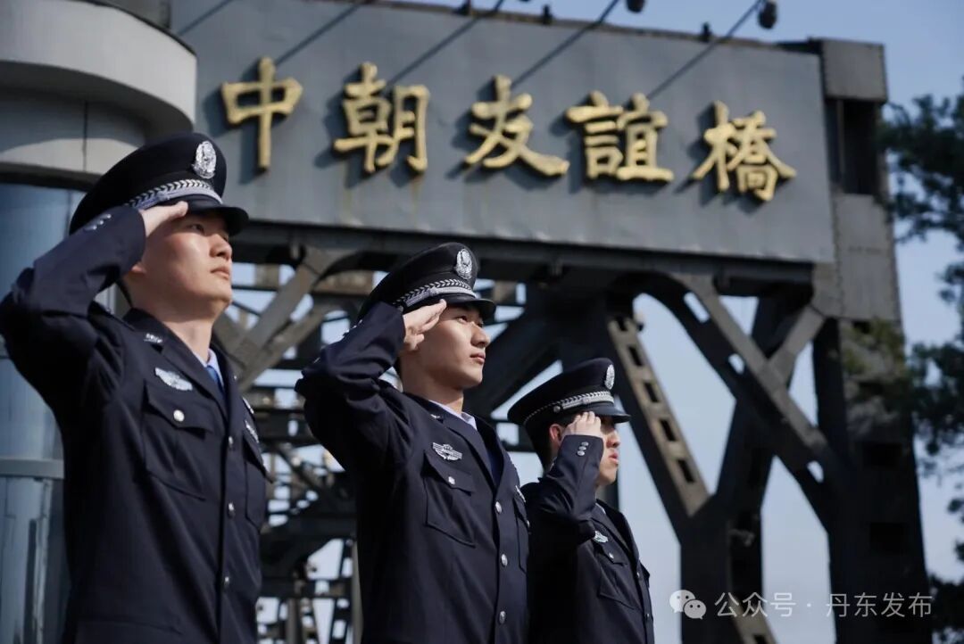 在见证英雄出征的中朝友谊桥,丹东移民管理警察身着警服、庄严肃立,以标准军礼遥寄哀思,用坚守传承使命,告慰不朽忠魂。
