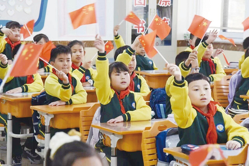 市实验小学新区分校的课堂上,孩子们手持五星红旗,“英雄从未远去,我们永远铭记”的誓言铿锵有力,回荡整个教室。老师带领孩子们观看英烈视频,用通俗语言讲解烈士遗骸迎回的意义,播下敬畏与热爱的种子。视频结束后,孩子们用自己的方式致敬英雄,在卡片上写下对英雄的缅怀和敬意。