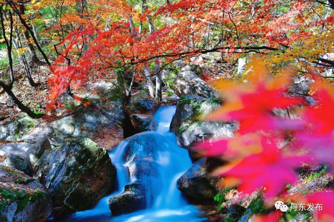 连日来各地游客慕名前来欣赏“枫叶映清泉,彩林掩幽谷”的美景。