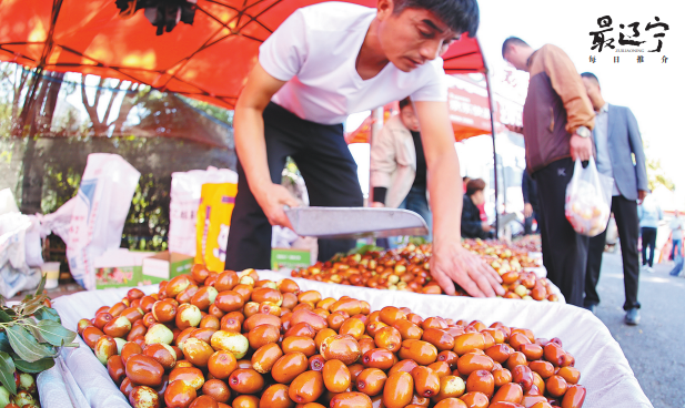 初秋的朝阳市双塔区龙山街大枣集中销售点热闹非凡,空气中弥漫着香甜气息,圆润饱满的大枣堆成了“小山”,仿佛秋天都浓缩在了这片热闹的市集里。多年来,朝阳大枣持续“走红”,因其生长环境昼夜温差大、光照充足,大枣糖分高、口感脆,是辽宁省特色农产品,也是“国家地理标志产品”,深受各地消费者青睐。