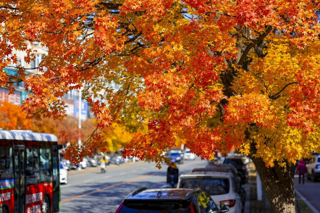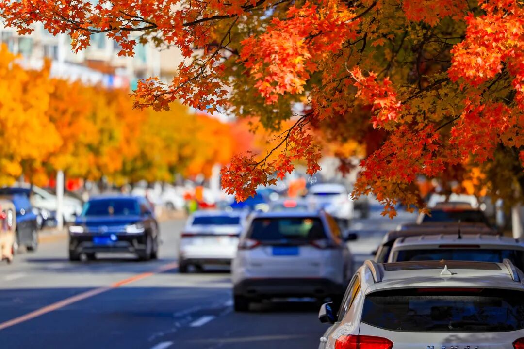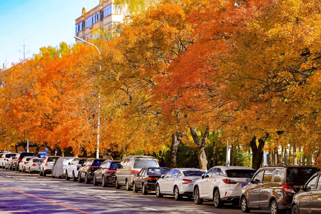行走在街道上,仿佛步入一幅流动的红叶画卷:抬头是如火如荼的树冠,低头是铺满落叶的 “地毯”,空气中弥漫着草木的清香,令人沉醉不已。