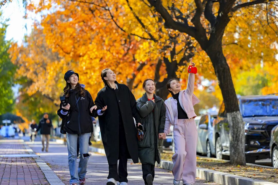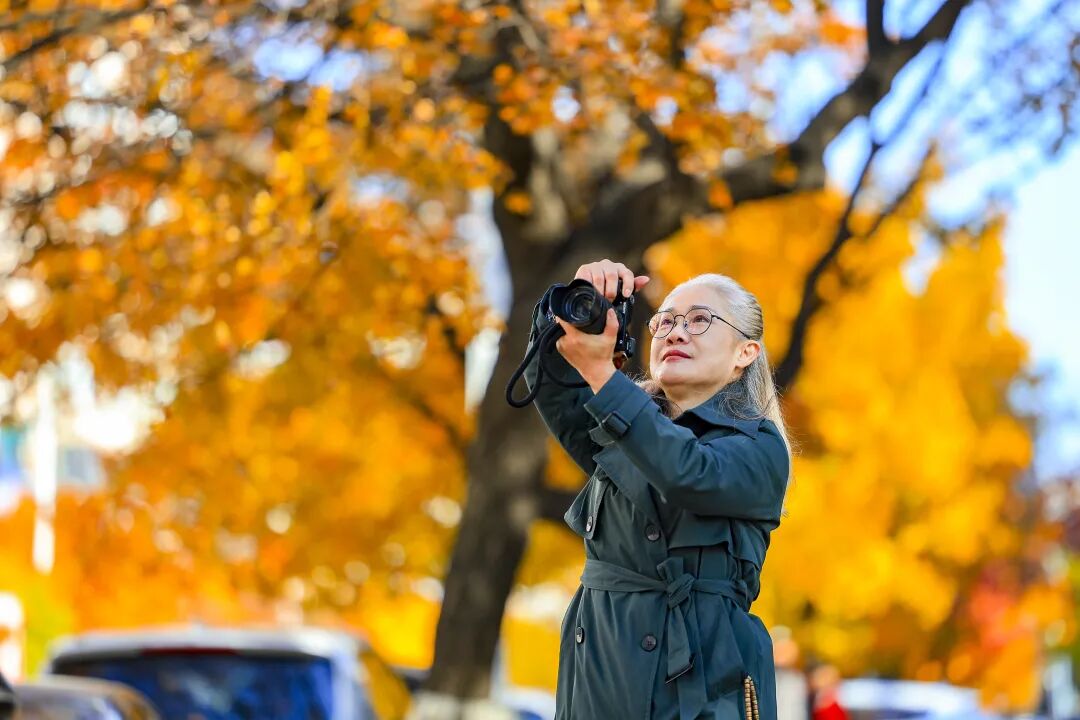 市民和游客漫步其间,用相机和手机定格📷美好瞬间,尽情享受着这份秋日静好。