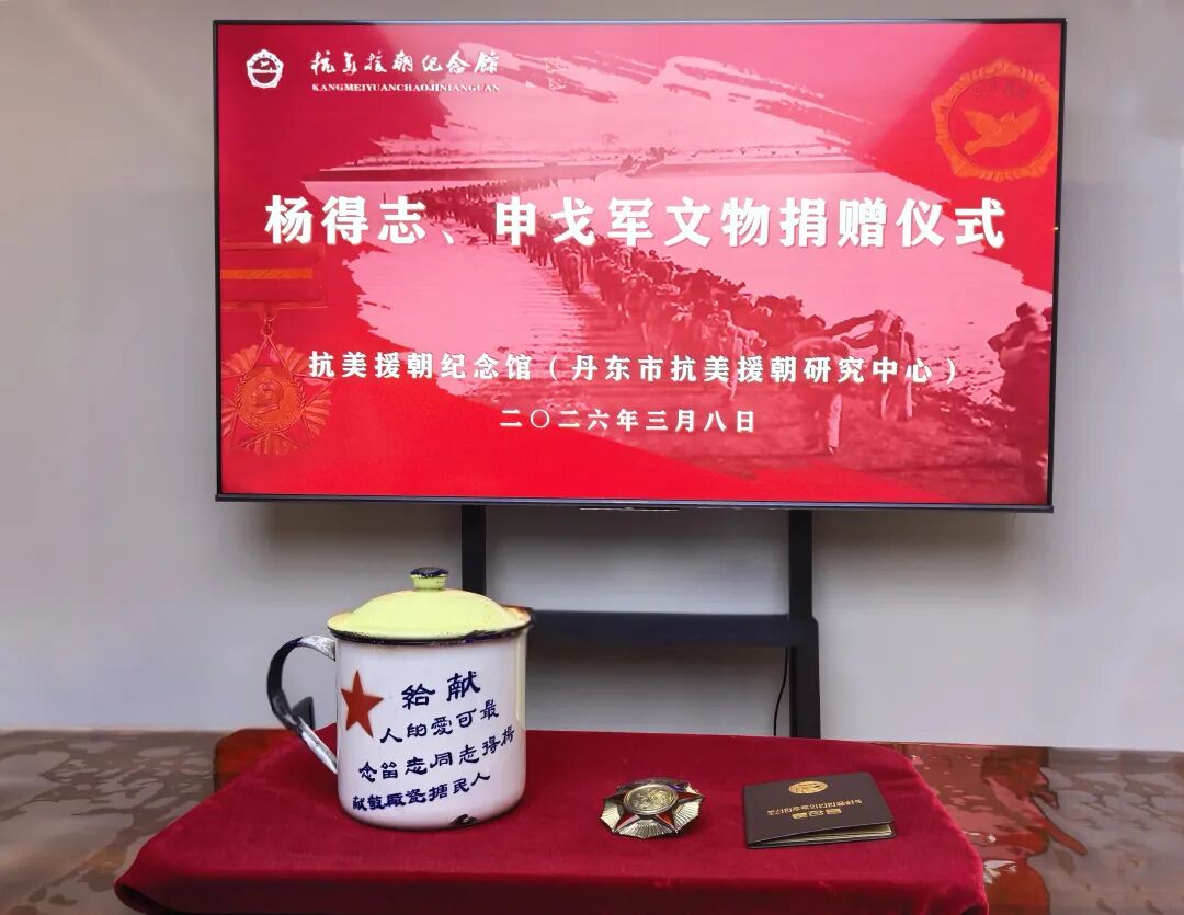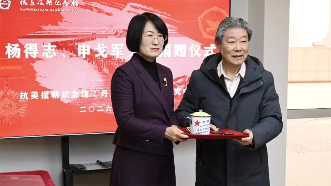 3月8日,一场简朴而庄重的革命文物捐赠仪式在抗美援朝纪念馆举行。杨得志将军之子、原南京军区常委、联勤部部长杨建华少将专程来丹,代表杨得志和申戈军的子女,向抗美援朝纪念馆捐赠了原中国人民志愿军司令员、开国上将杨得志和夫人申戈军在抗美援朝战争中使用的搪瓷缸和荣获的勋章,为红色文物保护与传承再添珍贵实物史料。