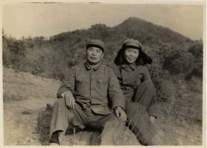 杨得志和夫人申戈军在第19兵团部住地朝鲜仙女洞合影