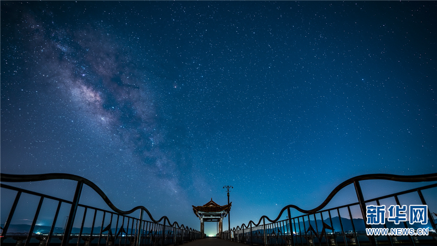 星空下的抚仙湖栈道(9月13日摄)。新华网发